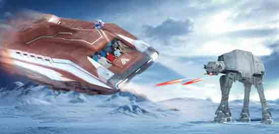 Za glas C-3PO droida bio je zadužen Anthony Daniels, jedini glumac koji se pojavio u svim “Star Wars” filmovima. Također se pojavljuju James Earl Jones i Frank Oz sa legendarnim glasovima Darth Vadera i Yode, te Carrie Fisher kao princeza Leia i John Boyega kao Finn. Atrakciju je najbolje iskusiti na lokaciji u Walt Disney Worldu u Floridi, gdje se nalazi rekreacija šumske nastambe Ewoka, AT-AT u prirodnoj veličini i dućan u duhu pustinjskog grada Mos Espe.