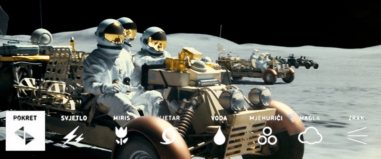 Mirisi paljevine u kombinaciji s tresenjem i vibracijom sjedala dobro su iskorišteni i pri polijetanju i slijetanju raznih svemirskih brodova. Tresenje je pristojno korišteno za simulacije vožnje vozilima po Mjesecu. Pokreti hidraulički kontroliranih sjedala korišteni su i u prikazima bestežinskog stanja, ali nažalost nisu niti blizu dojmljivi poput onih u “Gravitaciji”. Uz spomenuto padanje sa antene, agresivno pomicanje sjedala bilo je dojmljivo jedino još kod naglog pokreta kamere kojim je stilizirano prikazan dramatični prekret u radnji na Marsu.