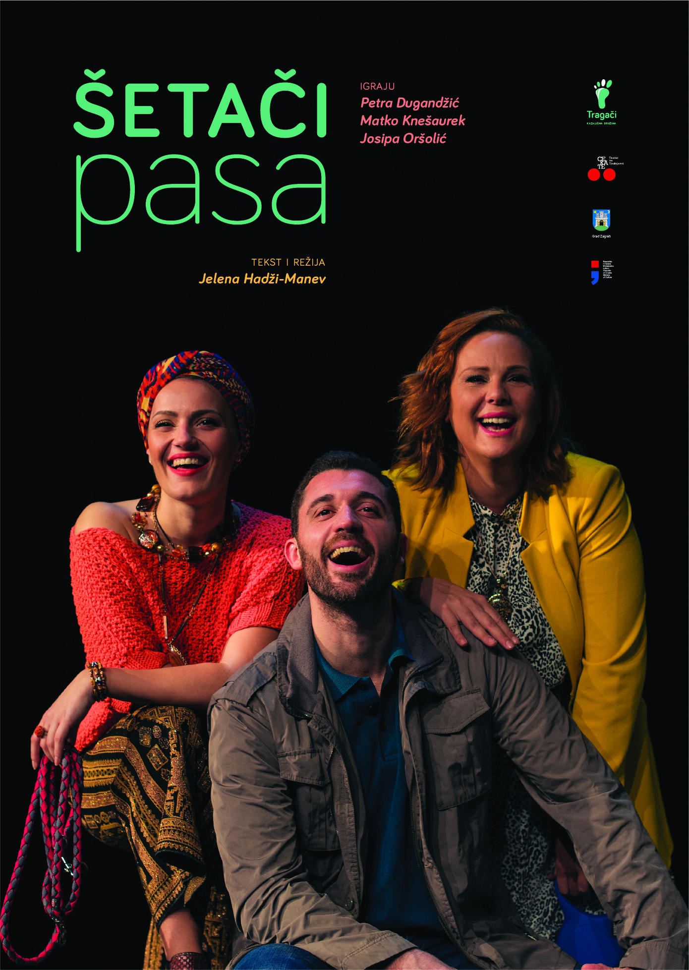 Kazališna družina Tragači u Centru za kulturu Trešnjevka u subotu, 09. studenoga 2019. u 20 sati premijerno će izvesti predstavu Šetači pasa, prema tekstu i u režiji Jelene Hadži-Manev.
