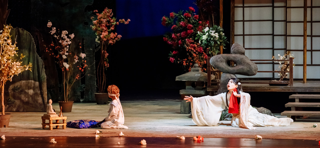 Publika je lijepo primila izvedbu uobličenu u kompoziciju povezanih činova s jednom pauzom i jednom scenskom postavom, realistički prikazanih arhitektonskih i kostimografskih detalja, s tradicijskom japanskom odjećom i historijski rekonstruiranom odjećom američkih sudionika (uniformiranog Pinkertona i njegove ‘prave supruge’ te konzula Sharplessa). U pogledu scene i kostima dašak spektakularne dodane vrijednosti: elementi japanskog vrta i antikni japanski svadbeni kimono protagonistice opere u kojoj su alternative sopranistice Elena Dee i Alyona Kistenyova.