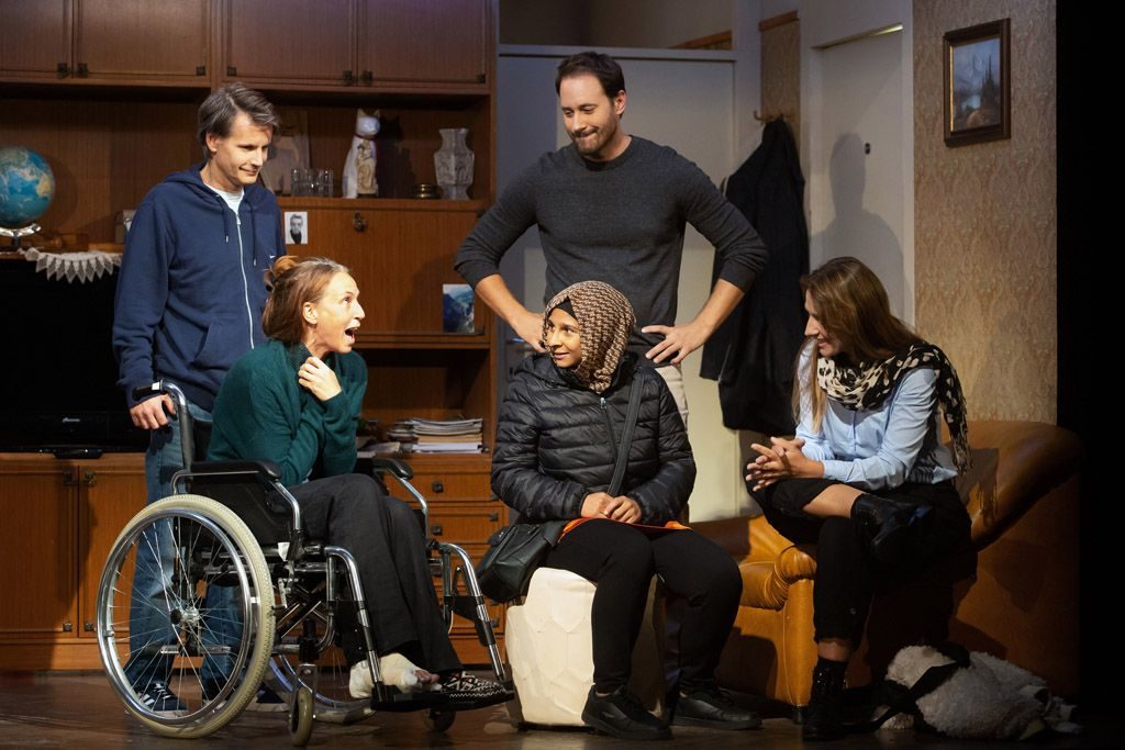U predstavi igraju Aljoša Ternovšek, Lučka Počkaj, Tanja Potočnik, Miha Rodman, Lina Akif, Tarek Rashid / Ciril Roblek.