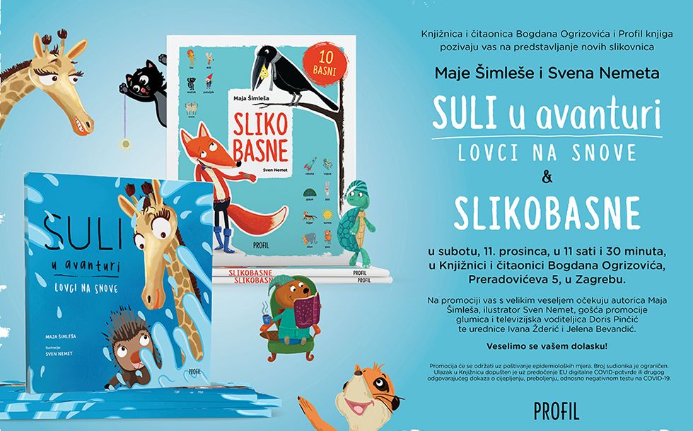 „Maja Šimleša i Sven Nemet izuzetni su i inspirativni autori čije slikovnice oduševljavaju veselim i mudrim stihovima te divnim pejzažima i duhovitim scenama. Ponosni smo što ih možemo predstaviti našim čitateljima i što smo imali priliku proslaviti petu objavljenu slikovnicu u četiri godine. Serija Suli u avanturi ove je godine doživjela četvrti nastavak, djeca je obožavaju, a ušla je i u lektiru. Slikobasne su novi projekt za djecu koja počinju čitati, a pohvale ovom sjajnom dvojcu se nižu“, kazala je urednica u Profilu Ivana Žderić te otkrila da će se radnja nove Suli odvijati u džungli.