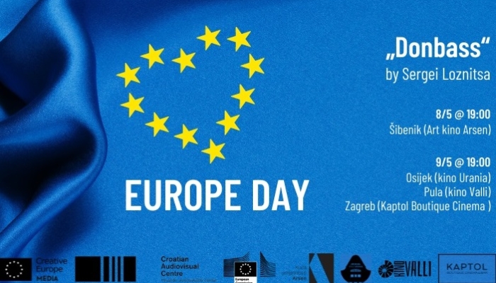 Na inicijativu Međunarodnog festivala književnosti u Berlinu, Desk Kreativne Europe – Ured MEDIA Hrvatske, u suradnji s Art kinom Arsen (Šibenik), kinom Urania (Osijek), kinom Valli (Pula) i Kaptol Boutique Cinema (Zagreb) te u partnerstvu s Hrvatskim audiovizualnim centrom i Predstavništvom Europske komisije u Hrvatskoj, obilježava Dan Europe 8. i 9. svibnja prikazivanjem ukrajinskog filma Donbas u režiji Sergeja Loznice.