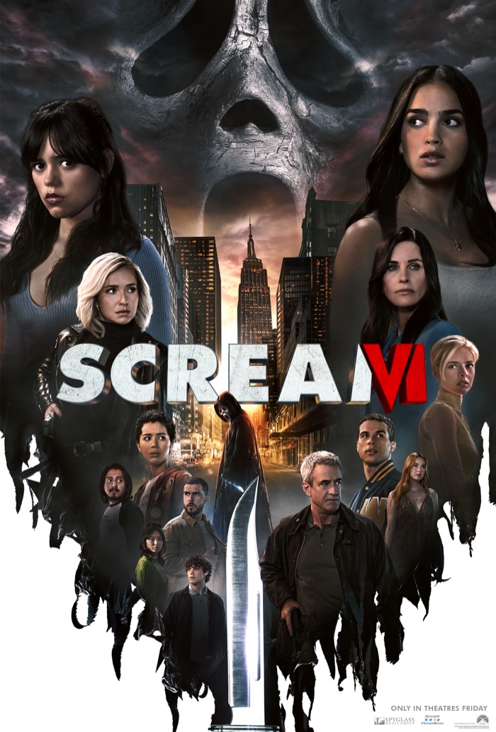 ULOGE: Melissa Barrera, Jasmin Savoy Brown, Jack Champion, Henry Czerny, Mason Gooding, Liana Liberato, Dermot Mulroney, Devyn Nekoda, Jenna Ortega, Tony Revolori, Josh Segarra, Samara Weaving with Hayden Panettiere and Courteney Cox.