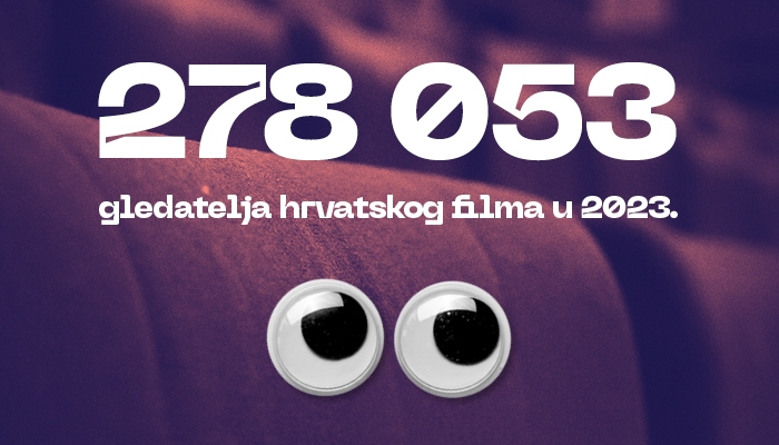 Zagreb, 10. siječnja – Domaća kinematografija u protekloj je godini ostvarila zapažen uspjeh – domaći film pogledalo je 278 053 gledatelja što 2023. godinu pozicionira kao treću najuspješniju godinu od osnutka Hrvatskog audiovizualnog centra – odmah iza 2013. (436 074 gledatelja) te 2012. (328 158 gledatelja). Također, u odnosu na prethodnu, 2022. godinu (gledanost 220 776 gledatelja), 2023. godina donosi porast gledanosti u iznosu od 26 %.