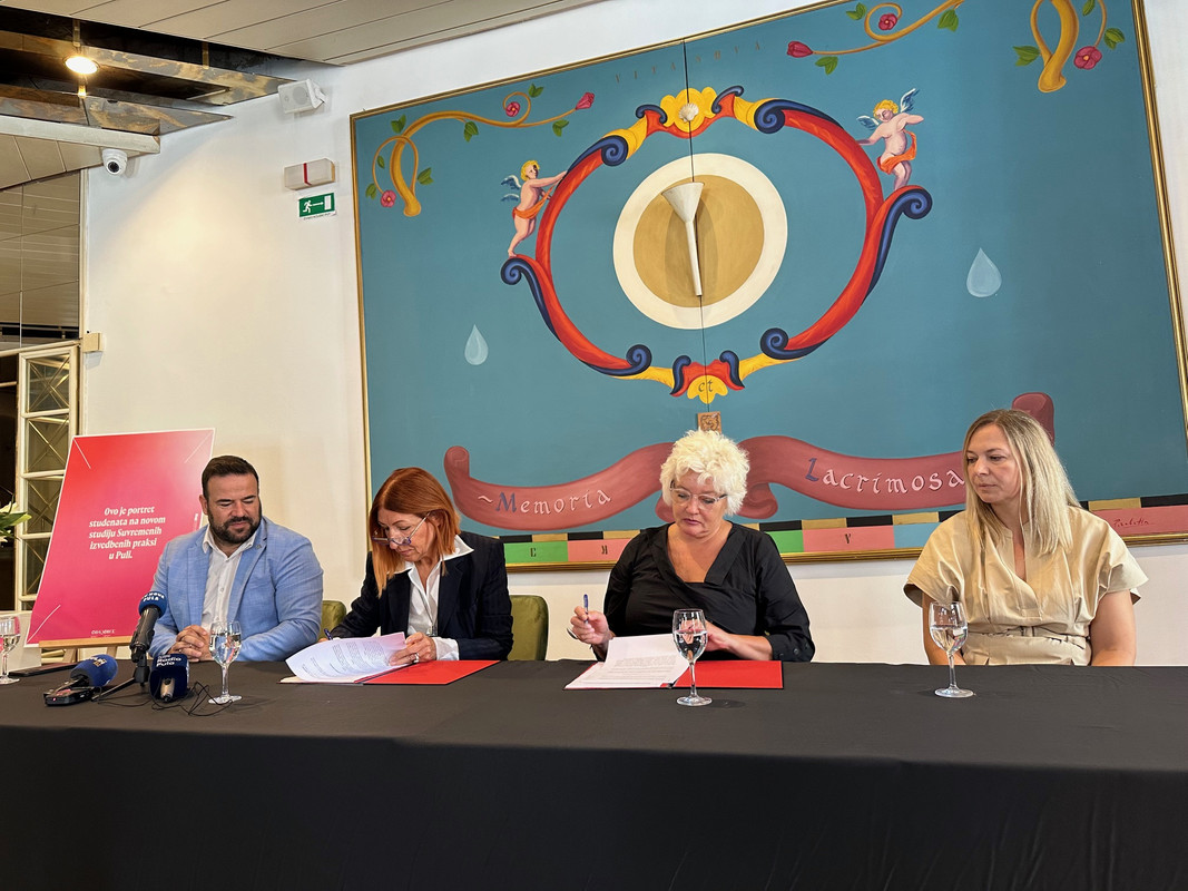 Sporazum su potpisale ravnateljica Istarskog narodnog kazališta Gordana Jeromela Kaić i dekanica Akademije za umjetnost i kulturu u Osijeku Helena Sablić Tomić, a potpisivanju su prisustvovali gradonačelnik Pule Filip Zoričić i pročelnica Upravnog odjela za kulturu Emina Popović Sterpin.