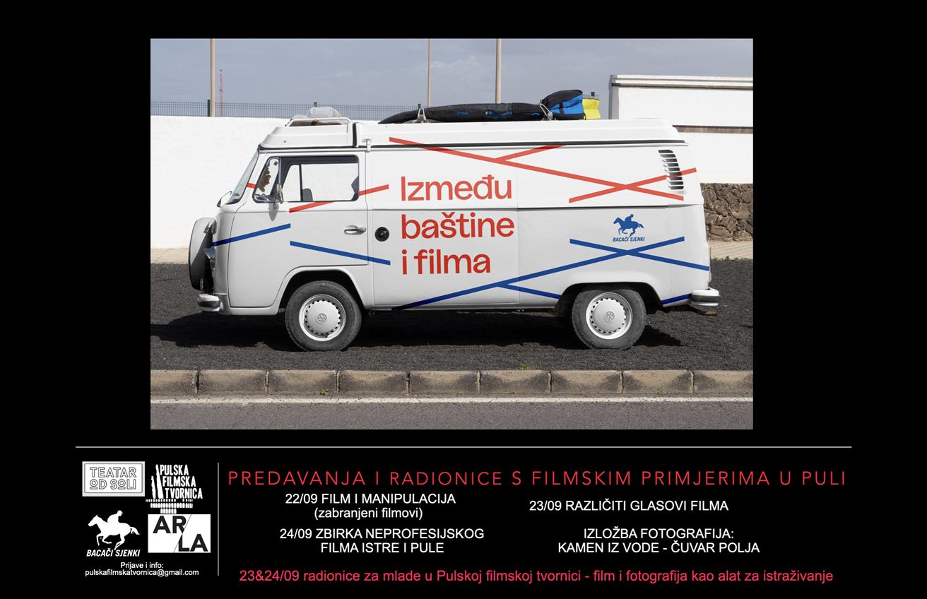 Od 22. do 25. rujna 2025. u Klubu Pulske filmske tvornice (Stiglicheva 12) održat će se bogat program predavanja, radionica, projekcija i izložbi u organizaciji Teatra od soli, Bacača sjenki, Pulske filmske tvornice, Društvenog centra Rojc i udruge Arla iz Đakova. Program okuplja mlade, lokalnu zajednicu i umjetnike, a kroz predavanja, radionice i umjetničke prikaze istražuje kako film i fotografija mogu postati alat za razumijevanje zajednice, baštine i suvremenih društvenih pitanja.