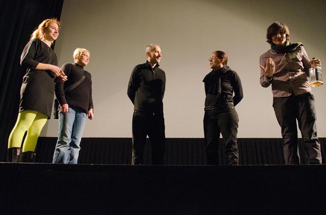 Marta Šušak, Sanja Ribičić Radić, Damir Radić, Diana Nenadić i Mima Simić na pozornici kina Tuškanac, Fotografija Matej Čelar