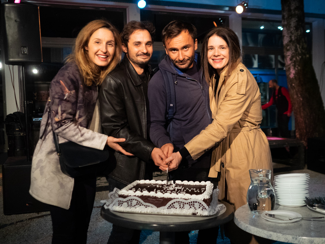 Glumci Filip Križan, Rakan Rushaidat, Ivana Roščić i Iva Visković već su dvije stotine puta zajedno u ovoj kazališnoj prikazi obitelji i mogućnost da je nakon toliko izvedbi interpretiraju na tako motiviran način zaslužio je svečanu i ritmičnu proslavu. Ona je uključila nastup grupe Radio Clash s najpoznatijim punk rock repertoarom i poticajem na ples. Kazališta i koncerata! &TD.