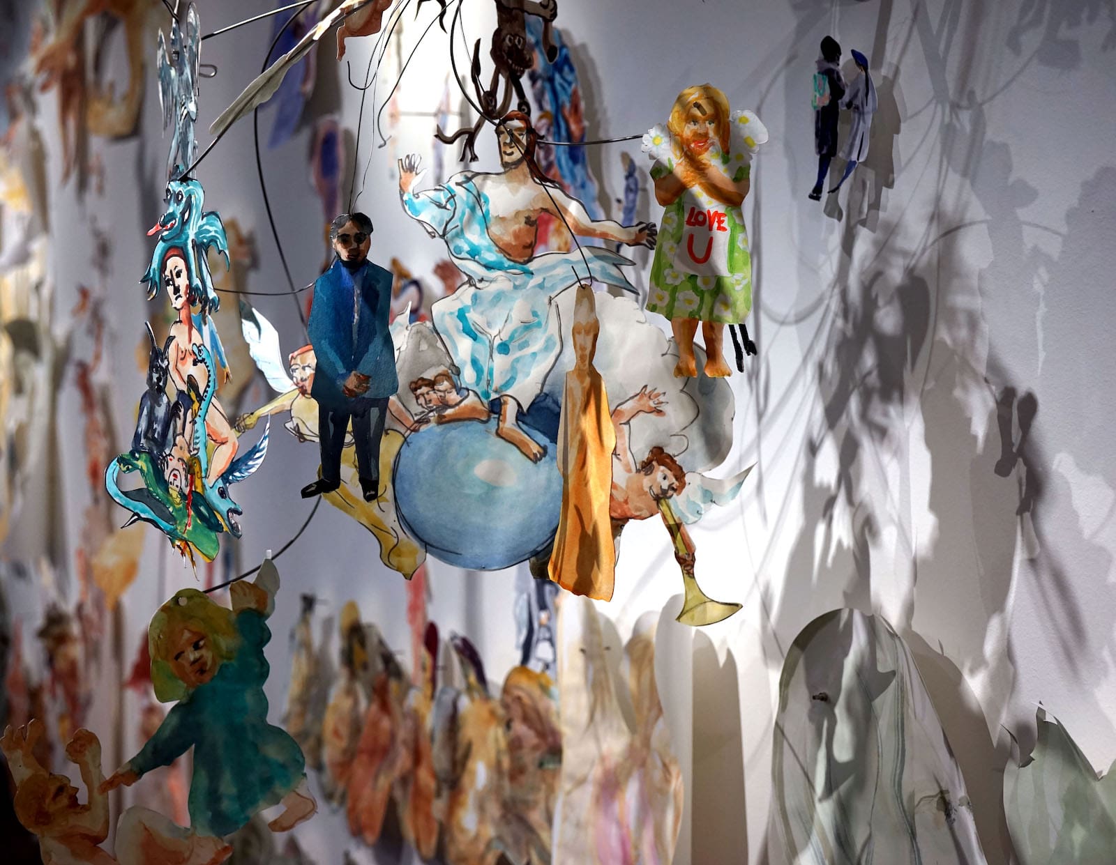 Petri Hytönen miješa akvarel, sprej, crtež i fotografiju s humorom, psihodelijom, prirodom, detaljima iz svakodnevnog života i povijesno-umjetničkim referencama. Za rad “Na zemlji, kao na nebu i negdje između” izradio je trodimenzionalne, pokretne modularne slike u akvarelu kojima u prvi plan stavlja ljudska bića i moralna pitanja s kojima se neprestano suočavaju. Hytönen sustavno puca u mjehuriće koje razdvojeni pojedinci grade oko sebe. Dok jedan od njih ima vjetar pod krilima, drugi se strmoglavljuje ravno prema nemilosrdnoj zemlji. Homo deus, homo sapiens i tamo negdje između.