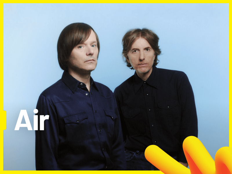 Air je francuski glazbeni duo iz Versaillesa koji čine Nicolas Godin i Jean-Benoît Dunckel. Prvotno studenti astrofizike i arhitekture, ovaj dvojac ostavio je trajan trag u pop kulturi svojim debitantskim albumom iz 1998. godine, ‘Moon Safari’ najprepoznatljiviji po bezvremenskim hitovima ‘Sexy Boy’, ‘All I Need’ i ‘Kelly Watch the Stars’. ‘Moon Safari’ glazbeni kritičari često ističu kao jedan od kamena temeljaca downtempo žanra, a uz jednoglasne pozitivne kritike ovaj kultni album Airu je osigurao i globalnu publiku te dominaciju na glazbenim ljestvicama na prijelazu milenija. Nakon izvanredno uspješnog debitantskog albuma, Air je nastavio nizati uspješnice i inovirati s albumima te originalnom glazbom za filmove pri čemu se posebno ističe soundtrack za dugometražni redateljski debi Sofie Coppole ‘The Virgin Suicides’ (2000.), koji se smatra jednim od najboljih albuma izvorne filmske glazbe u povijesti, a uz to je i početak dugogodišnje suradnje s cijenjenom redateljicom s kojom su surađivali i na kasnijim filmskim uspješnicama ‘Lost in Translation’ i ‘Marie Antoinette’. Studijskim albumima ‘10 000 Hz Legend’ (2001.), ‘Talkie Walkie’ (2004.), ‘Pocket Symphony’ (2007.), ‘Love 2’ (2009.) kao i svojim drugim cjelovitim soundtrackom za kultni nijemi film Georges Mélièsa iz 1912. ‘Le voyage dans la lune’ (2012.), Air nastavlja istraživati eksperimentalne i futurističke zvukove s elementima dream-popa, trip-hopa i ambijentalne glazbe stvarajući prepoznatljivo atmosferičan zvuk koji izmiče žanrovskim etiketama.